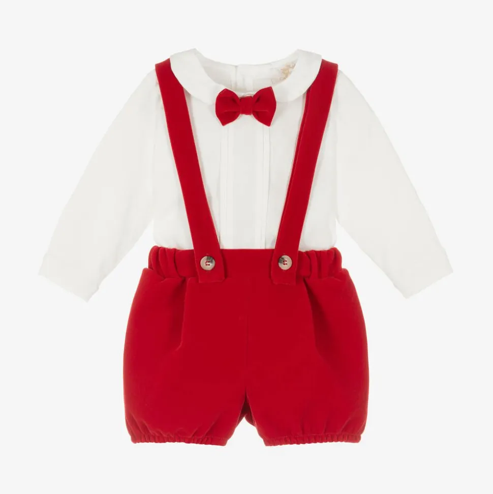 Baby Boys Ivory & Red Velvet Shorts Set
