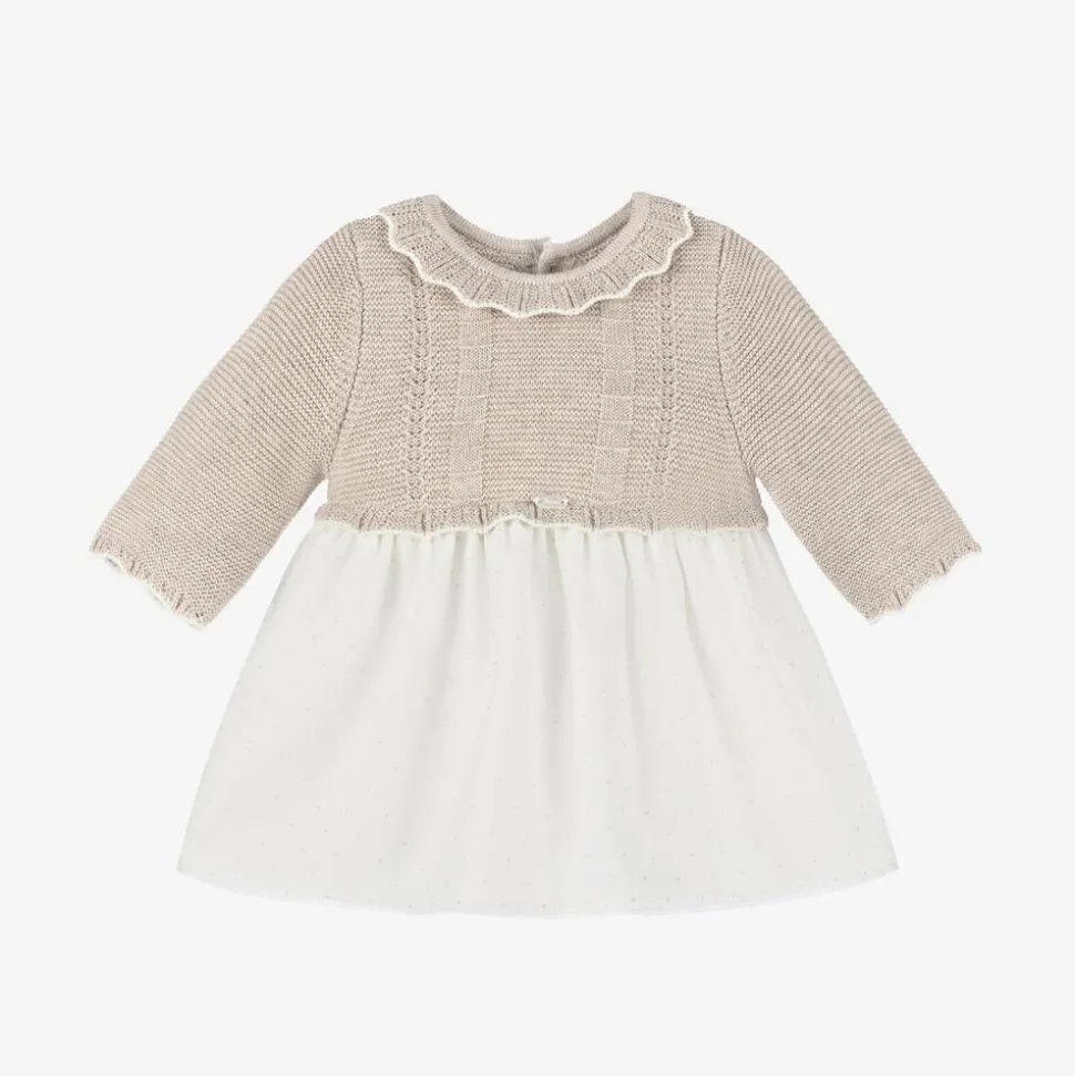 Baby Girls Beige Knit & Organza Dress