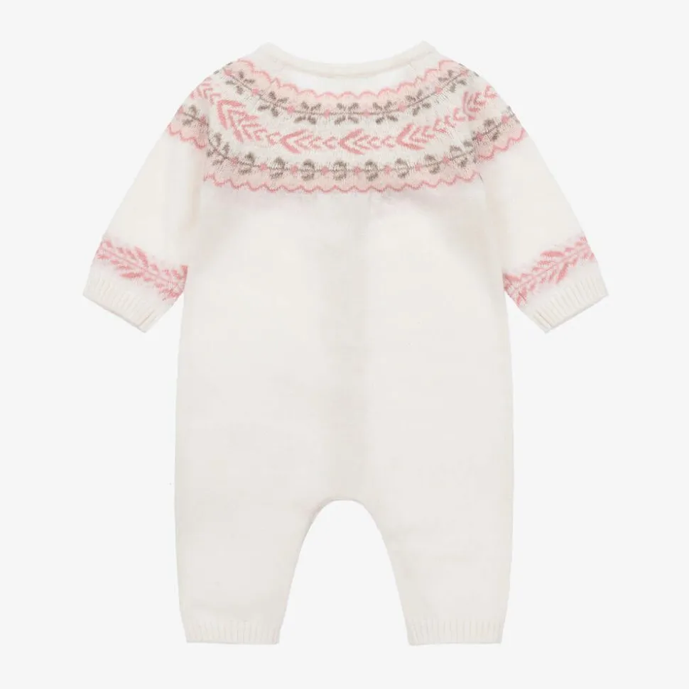 Baby Girls Ivory Floral Wool & Cashmere Romper
