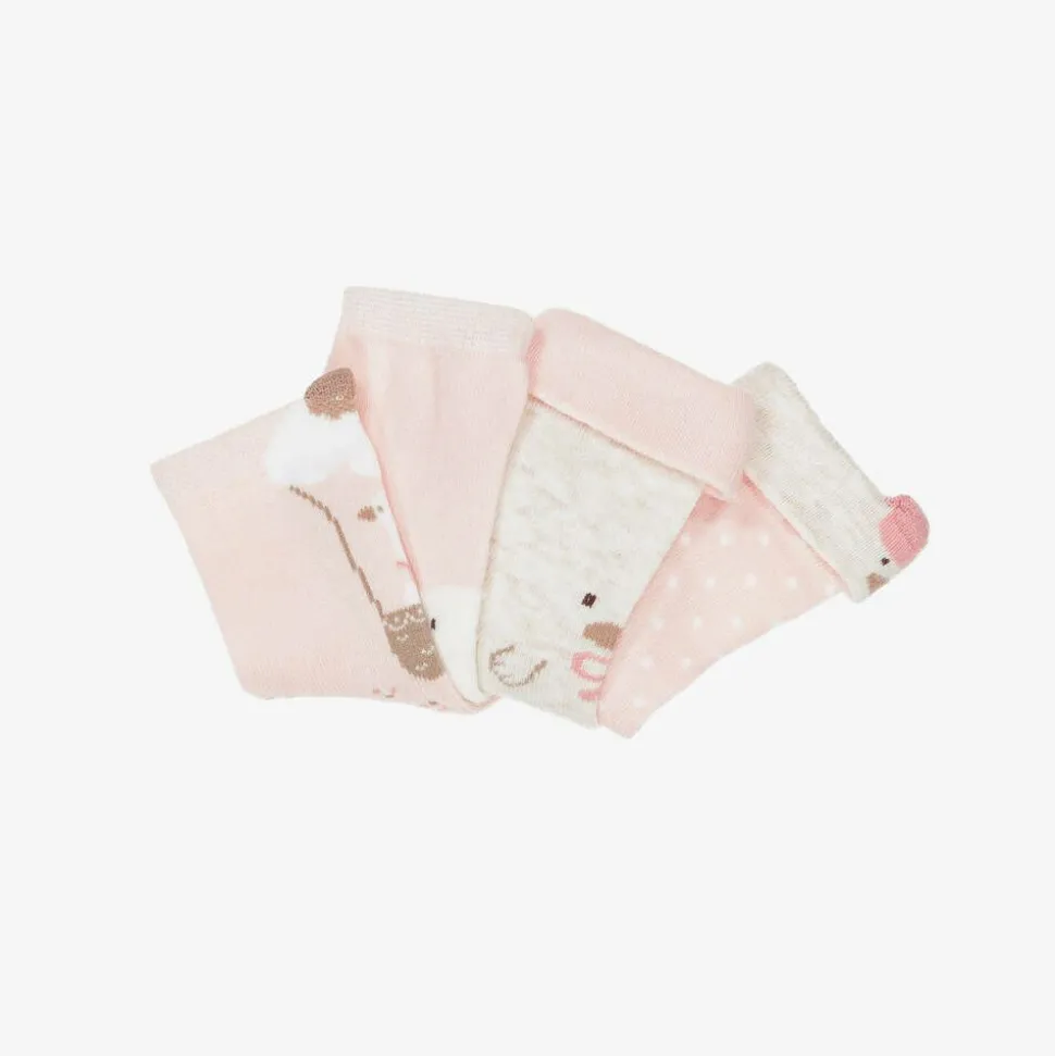 Super cute pale pink socks for baby girls by Spanish brand Mayoral, with different duck motifs. Ankle length, they are made in a soft, comfortable cotton blend. These socks contain organic cotton.