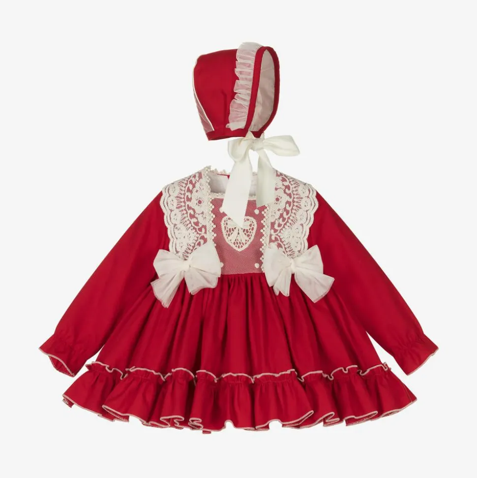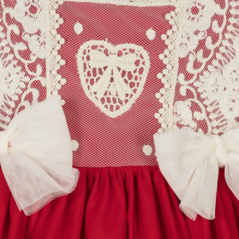 Baby Girls Red Cotton & Lace Dress Set