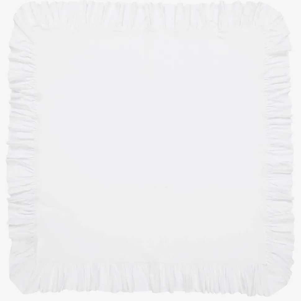 A white blanket for baby girls from Lemon Loves Layette, made in a beautifully soft Pima cotton jersey. An ideal area to lay baby on, or as a lightweight cover when out and about, this gorgeous blanket is trimmed with a pretty frill.