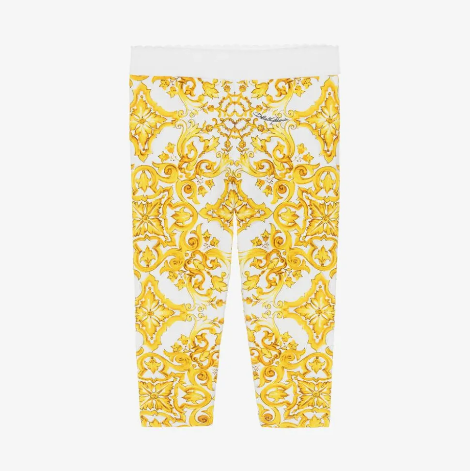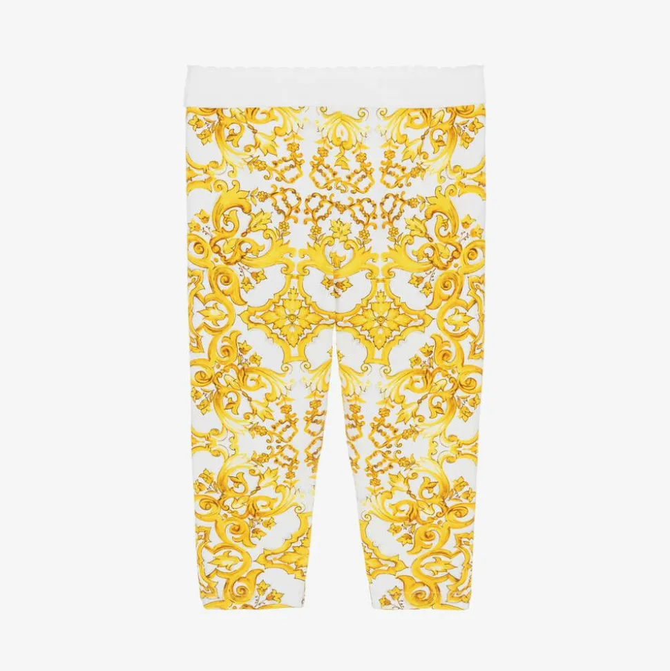 Baby Girls Yellow Majolica Print Cotton Leggings