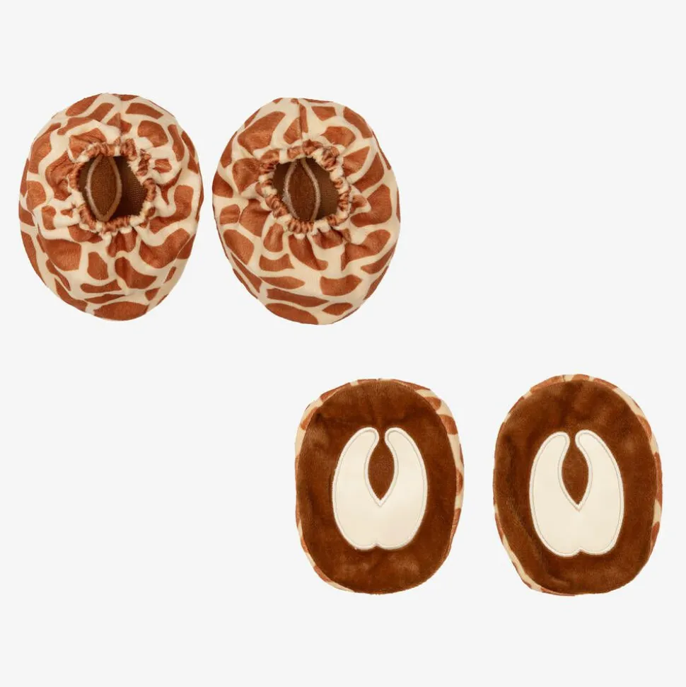 So cute for little boys and girls, this beige and brown giraffe costume is from Dress Up by Design. Made in soft velour, the set contains a onesie with attached mittens, a fun giraffe mask hood that fastens with velcro, and a removable tail that attaches with velcro. It comes with matching booties which have elasticated ankles and hoof foot pads on the soles.