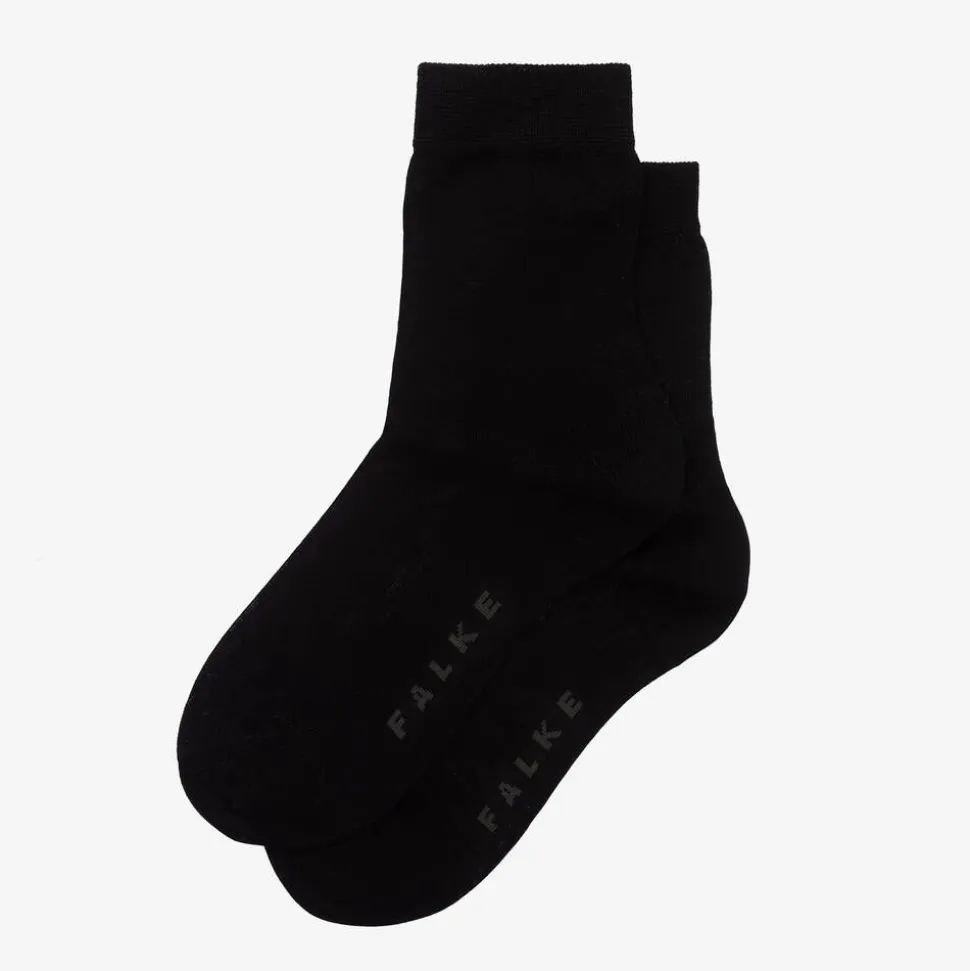 A pair of black luxury ankle socks for boys and girls by Falke. Made from a fine fil d'Ecosse cotton, with a slightly silky look. They have gently ribbed cuffs and reinforced stress zones for added durability.