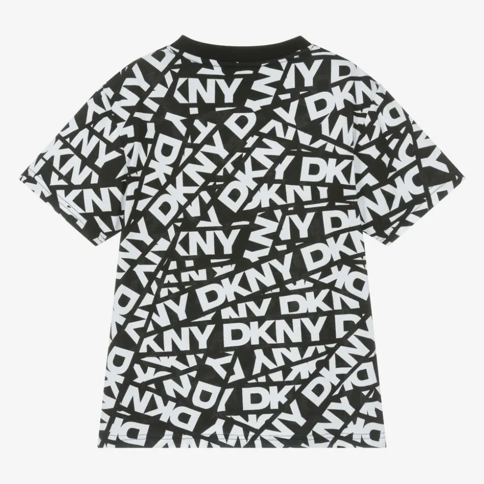 Black and white T-shirt for boys and girls by DKNY, made in soft cotton jersey. Cool and casual, this short-sleeved top is patterned with the brand's monochrome graphic print for instant designer appeal.