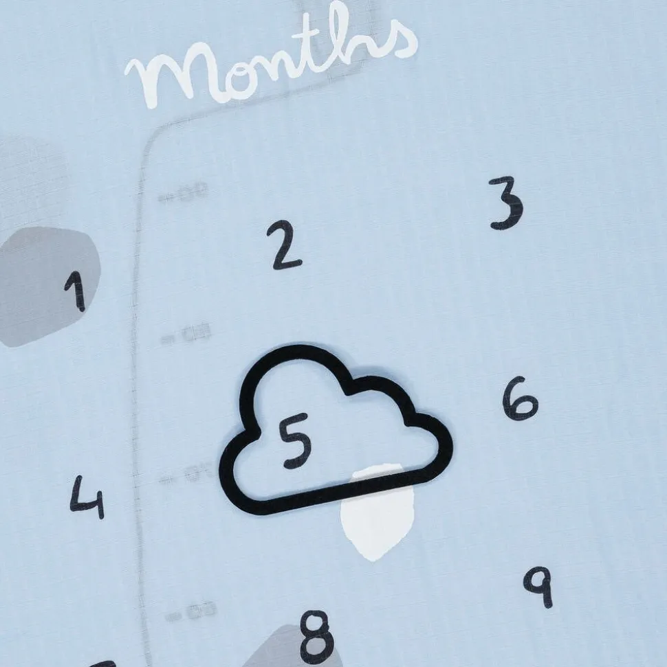 An adorable set of blue and white cotton swaddles by Mayoral is an adorable way to make memories of your baby's first months and measurements. Printed with height and month markers, simply lay your little one on the soft muslin, and use the felt cloud shape to record their milestones in your photographs. Soft against delicate skin, both swaddles can be used for sleep time, as well as a burping cloth or nursing cover.