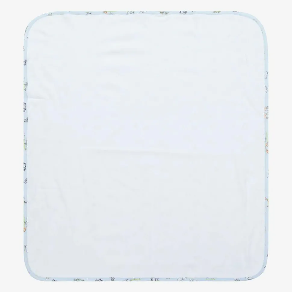 In a light shade of blue, this Kissy Kissy blanket for baby boys is made in Pima cotton jersey for a beautifully soft feel. It features friendly jungle animals on one side and a plain white colourway on the other. This double layer, machine washable blanket is ideal for the nursery or pram.