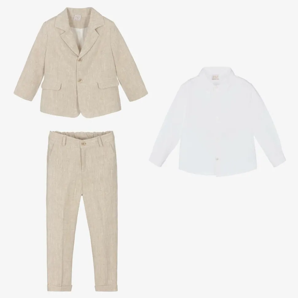 Boys Beige Linen Suit