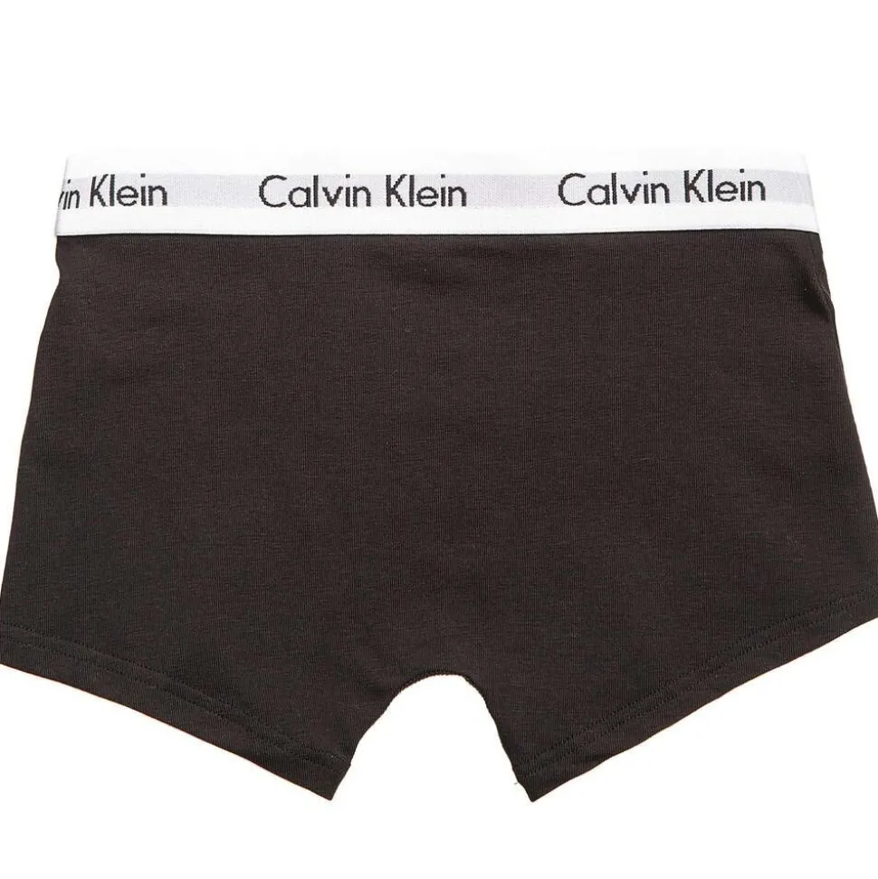 Calvin Klein, pack of two black boxer shorts for boys. Made with soft, stretchy cotton jersey and both have an elasticated waistband featuring the designer's name.