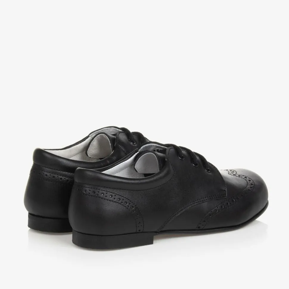 Exclusive to Childrensalon, a pair of smart, soft black leather lace-up shoes for boys by Children's Classics. In a traditional brogues style, they have a leather lining, padded insole and a rubber outsole.
