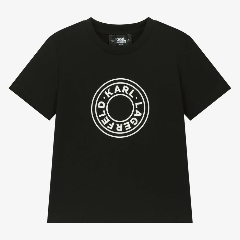 Casually styled, this black Mini-me short-sleeved T-shirt for boys is by KARL LAGERFELD KIDS. Made from soft organic cotton jersey, it is printed with a bold white circular logo for an instantly recognisable look.