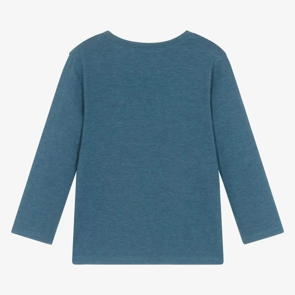 Boys dark teal blue cotton blend top by Hatley, with a ribbed crew neckline and long sleeves. Made in soft and comfortable slub jersey, this casual top has a cool, 'Fast and Free' racing car graphic printed on the front in red.