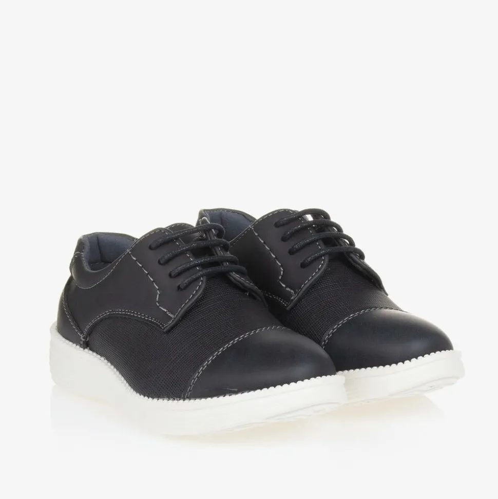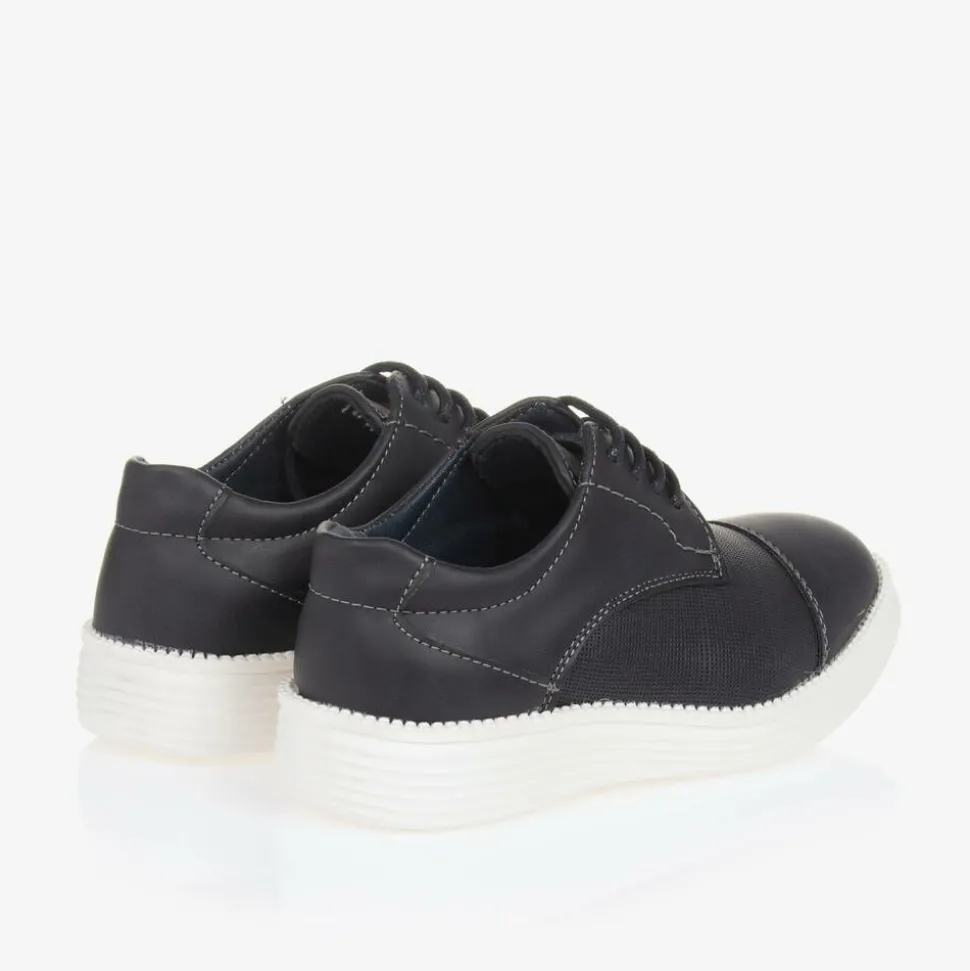 Navy blue with a contrasting white midsole, these smart occasion shoes for boys are by Sevva. Lace-fastening, they are made in smooth faux leather, with a finely textured insert. They have a smooth faux leather lining and a non-slip rubber sole for good grip.