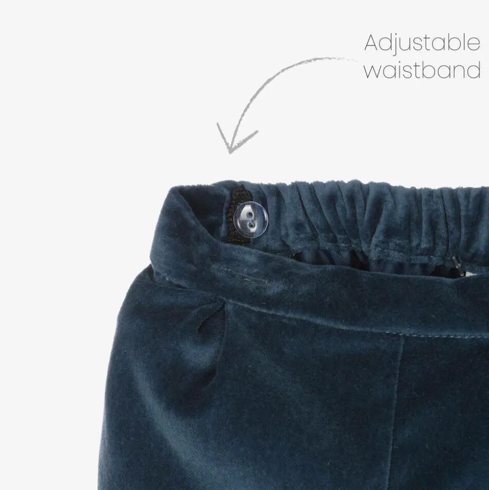 Boys Blue Velvet Hand-Smocked Buster Suit
