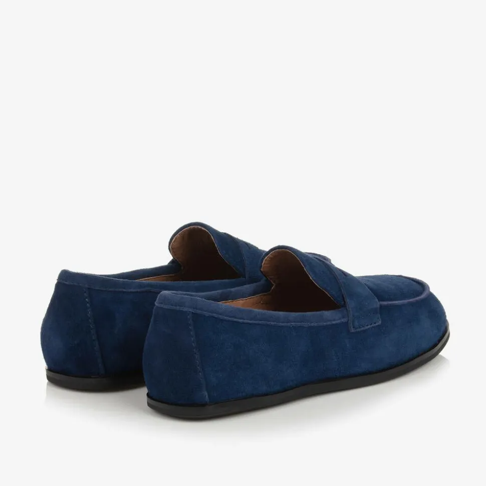 Boys Navy Blue Suede Leather Loafers