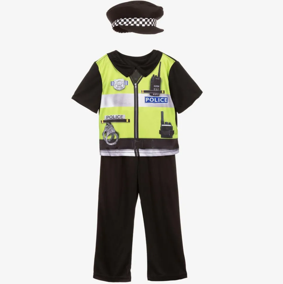 Boys 'Police Officer' dressing-up costume by Dress Up by Design, great for imaginative play. Made in recycled polyester jersey, the costume consists of a black top, trousers and hat. The top is printed with a green zip-up vest on the front, complete with a police officer badge, two-way radio and handcuffs for an authentic feel. Great for hours of endless fun, your child can enjoy dressing up in their new favourite uniform.