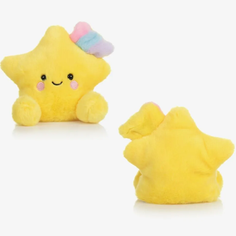 A fun, star-themed superhero gift hamper for boys by Childrensalon Hampers, comprising a cape, a mask, a soft star toy and a bath bomb. So much fun for imaginative play, the Souza cape is made in black velour with colourful star and lightning bolt appliqués, a shiny silver lurex lining and easy velcro fastening. The metallic gold mask has soft felt on the reverse and an elastic cord to secure it. The shooting star soft plush toy is part of Aurora's Palm Pals collection and is embroidered with a happy face. A fizzy, sparkly bath bomb with added shea butter completes the set.