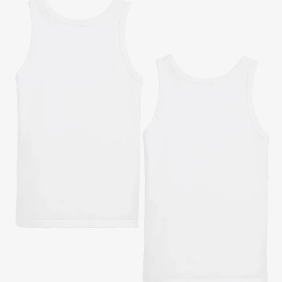 A pack of two classic white vests for boys by Petit Bateau. Cool and comfortable to wear, they are made in soft and stretchy organic cotton jersey.
