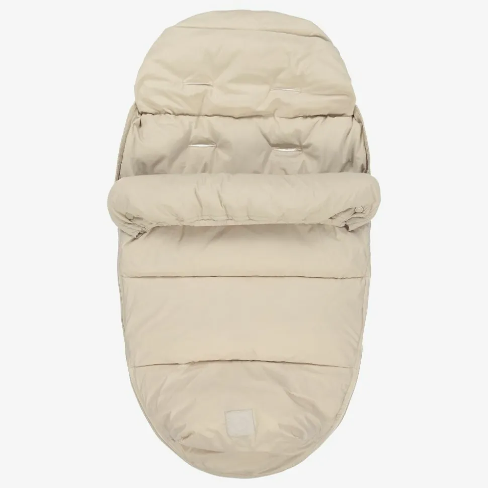 Light beige footmuff for baby boys and girls by Swedish brand Elodie. Silky smooth and lightweight, it is padded with soft down for ultimate warmth and comfort. The BIONIC-FINISH® ECO is free from harmful fluorocarbons and makes the exterior wind and water repellent. The two-way zip fastening allows for easy access and for the upper piece to be completely detached. There are pre-cut holes at the back for attaching to a car seat or stroller. The footmuff can be packed down to small size for easy for travelling.