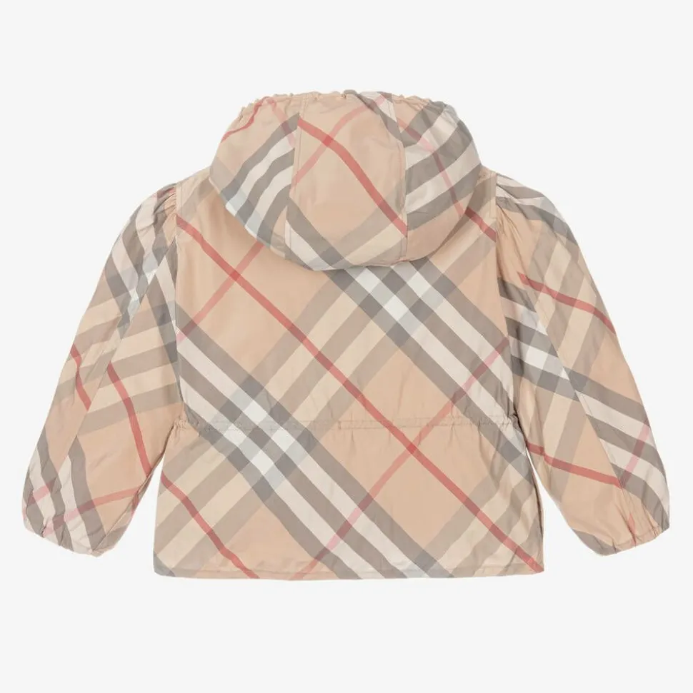 Girls Beige Check Hooded Jackets