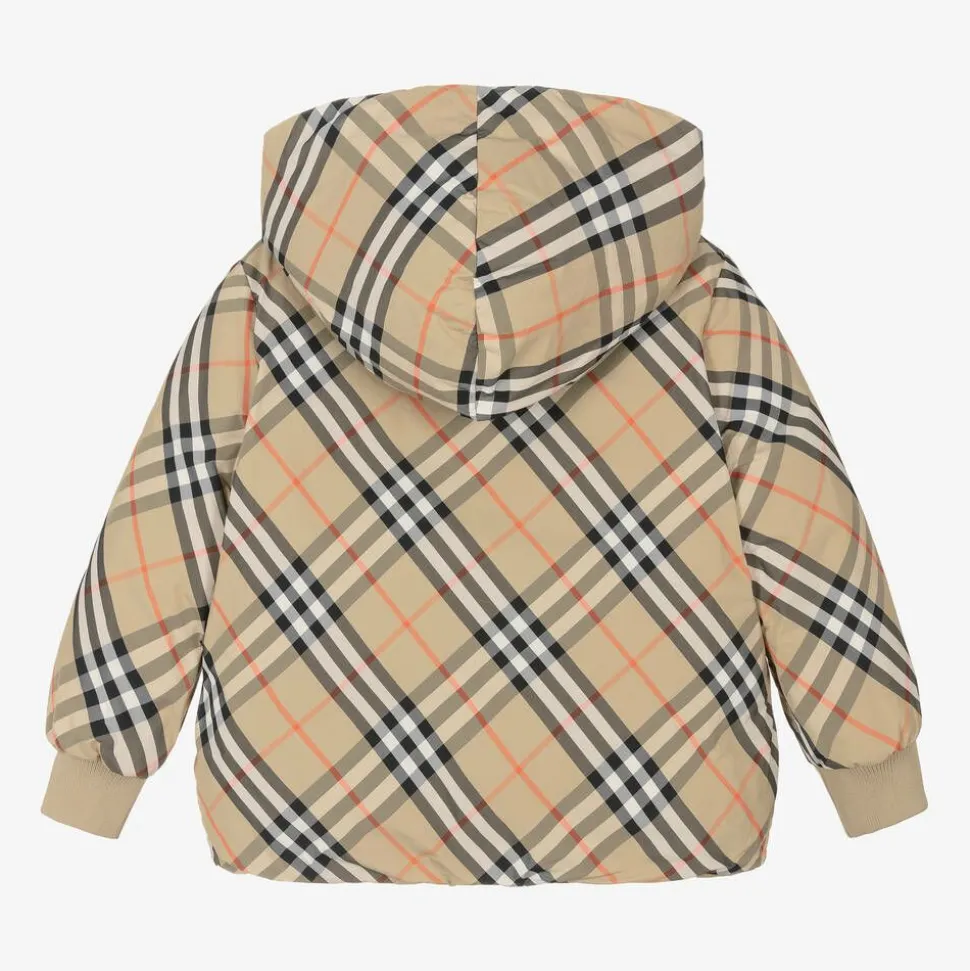 Girls Beige Check Reversible Down Jacket