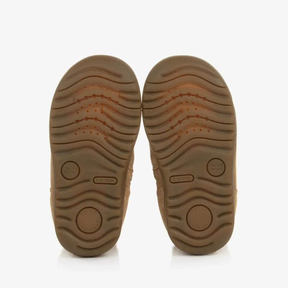 Lovely beige suede leather boots for little girls from Geox, with a warm faux fur trim and lining. Part the brand's Respira range, they feature thermal insulation and a removable, wool blend insole for extra toastiness while keeping feet breathable on colder days. Comfortable to wear, they have an ergonomic shape, a flexible rubber sole and a side zip fastening with a velcro tab to secure at the top.