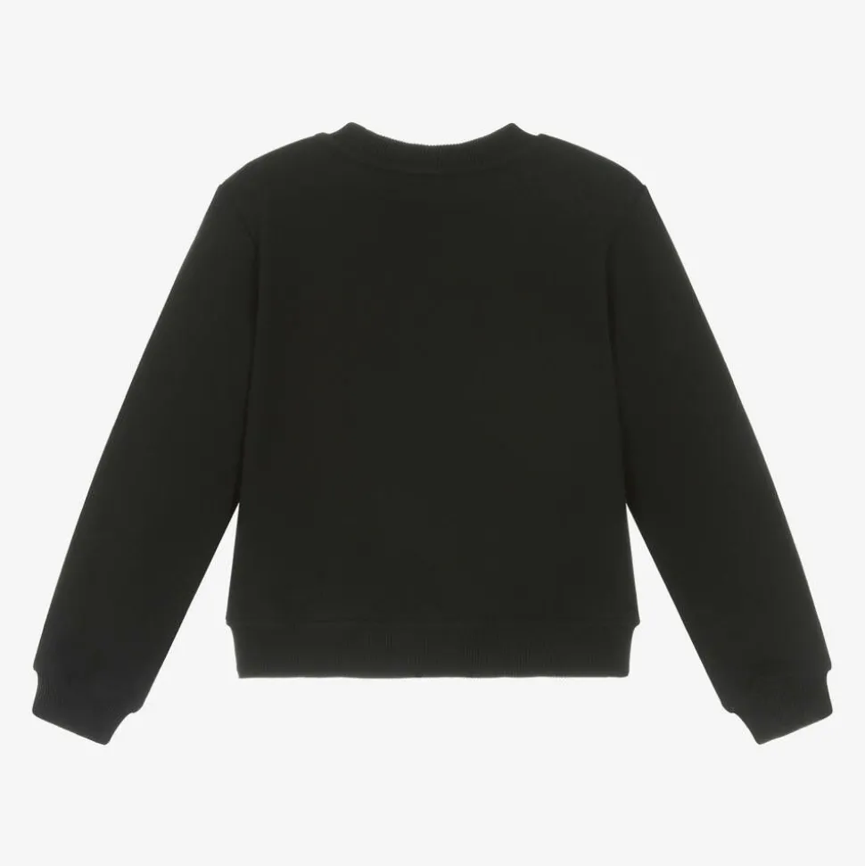 Girls Black Cotton Teddy Bear Sweatshirt