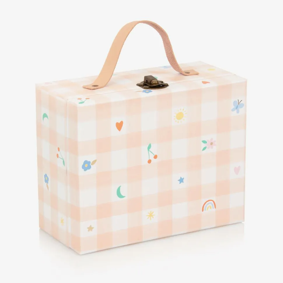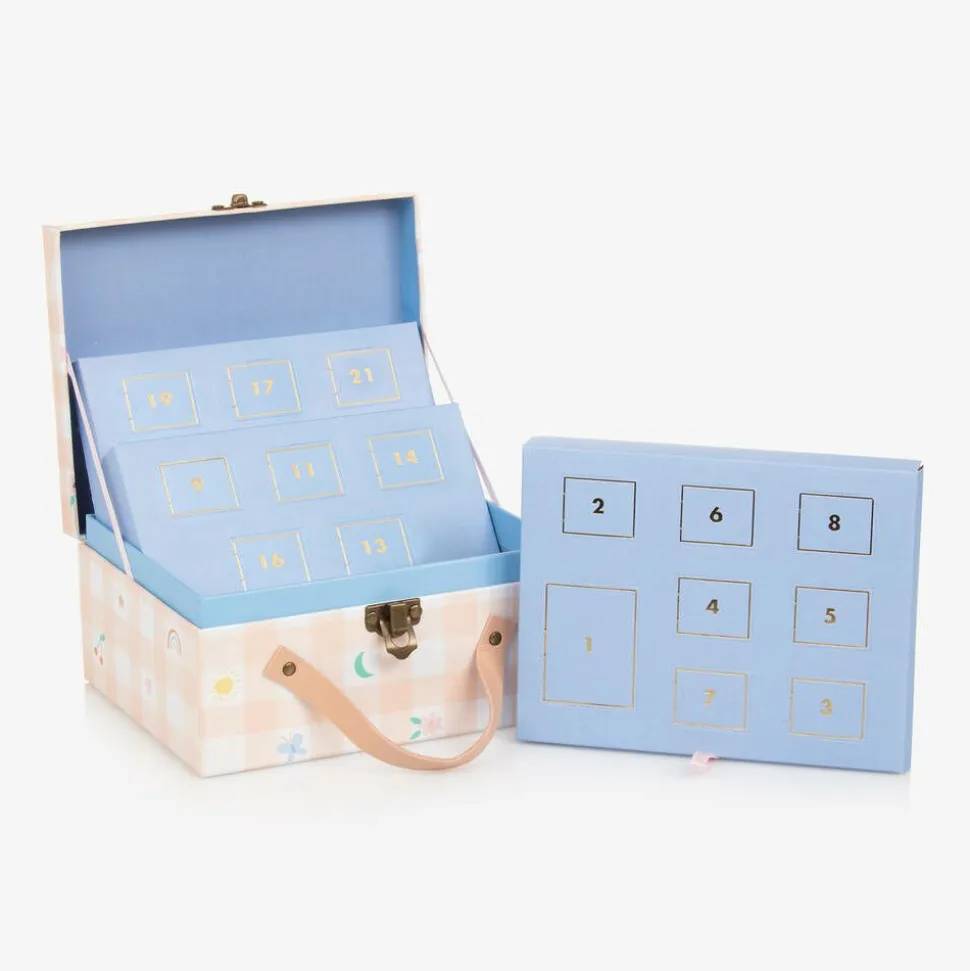 A fabulous way to count down the days to Christmas, this charm necklace advent calendar for girls is from Meri Meri. The lovely pink gingham suitcase is crafted from thick board with a leather handle and a burnished brass closure. It opens to reveal three boxes with numbered flaps. Each flap reveals enamel charms and coloured tassels, all with gold tone metal jump rings and lobster clasps to easily attach to the chain and waxed cord necklace. The seventeen charms include a unicorn, sausage dog, kitten, butterflies, cherries, a moon, shells, hearts, a mushroom and a rainbow.