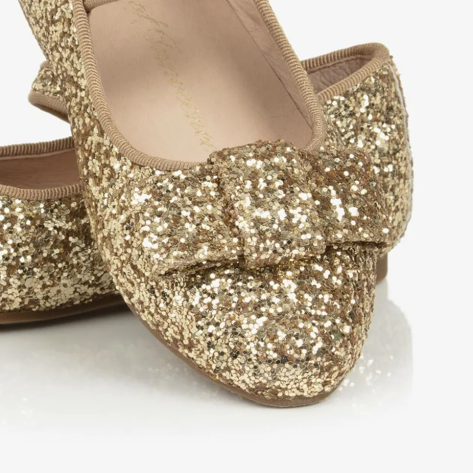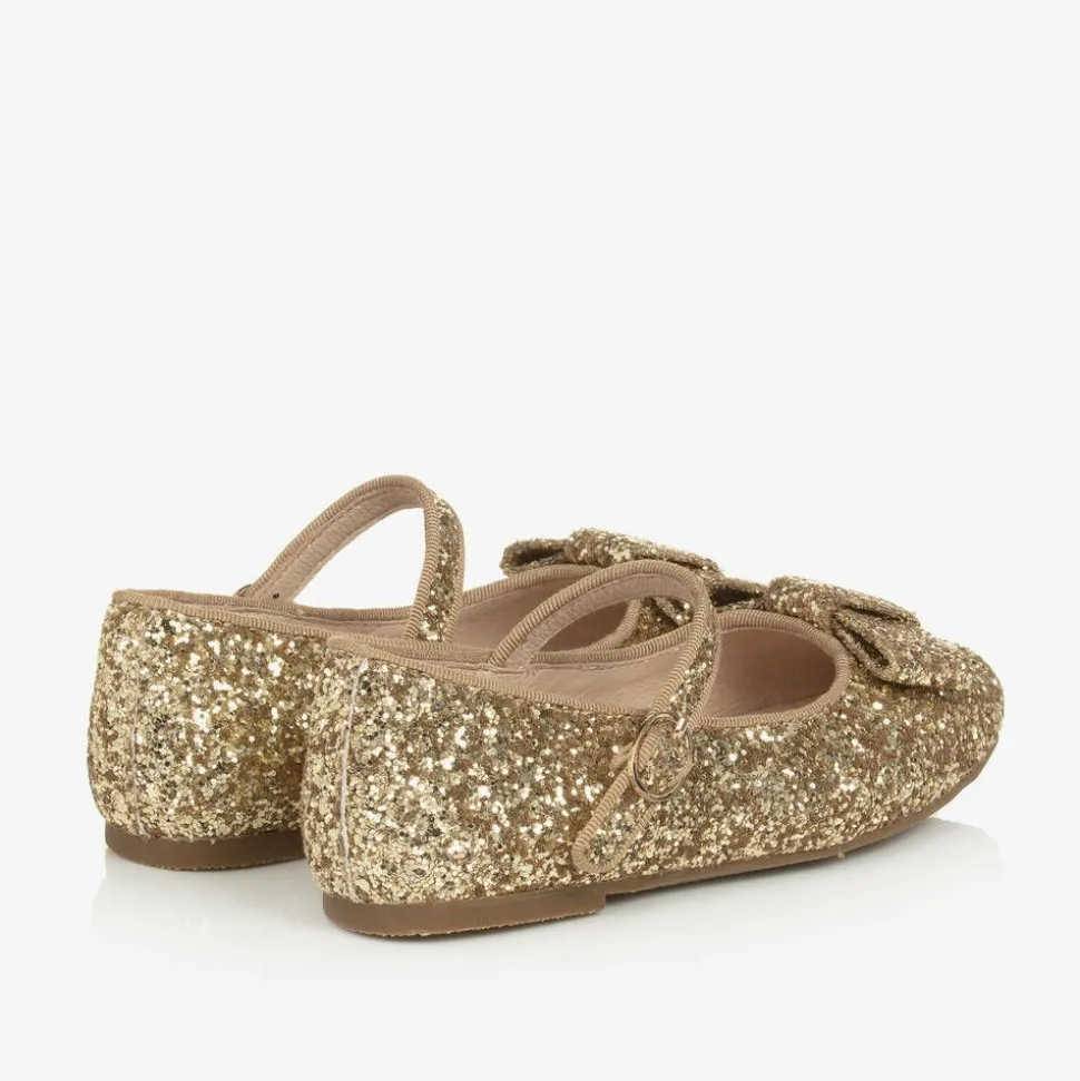 Girls Gold Glitter Bow Pumps