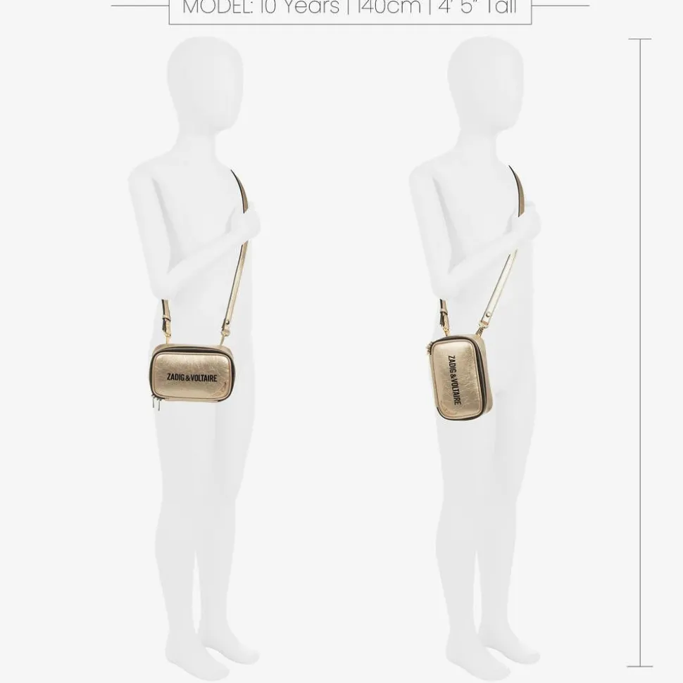 Super versatile gold bag for girls by Zadig&Voltaire, with many styling options. Using the panel on the back, it can be worn as a belt bag, or by attaching the adjustable strap it can be quickly converted into a cross-body bag or a shoulder bag in either vertical or horizontal positions. It is made in soft faux leather with a satin lining, and opens fully with a two-way zip.