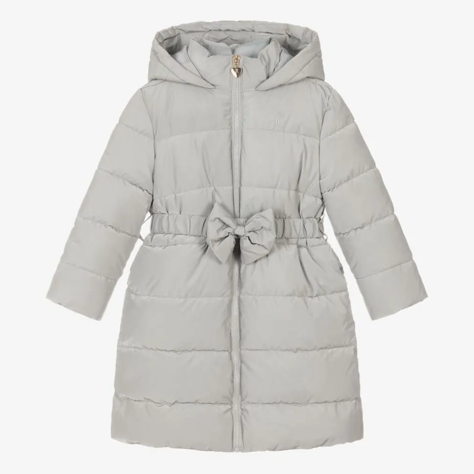 Girls Grey Bow Puffer Coat