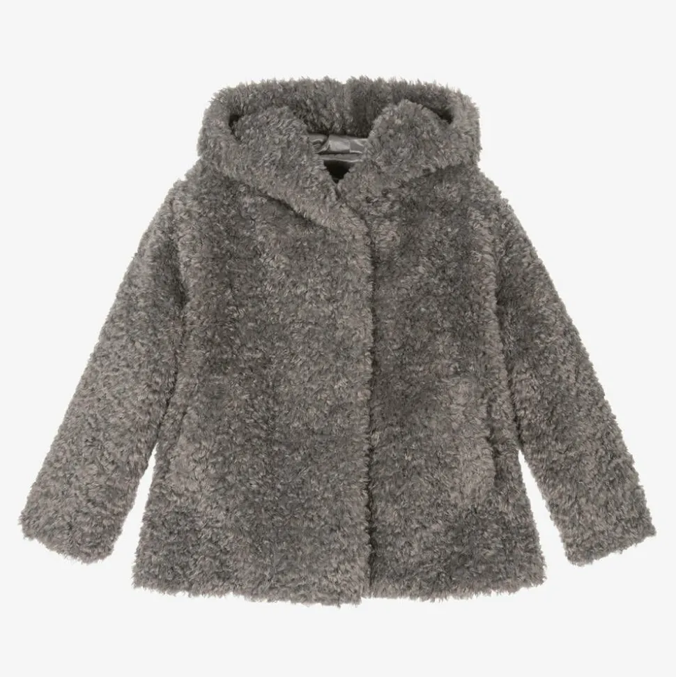Girls Grey Hooded Faux Fur Coat
