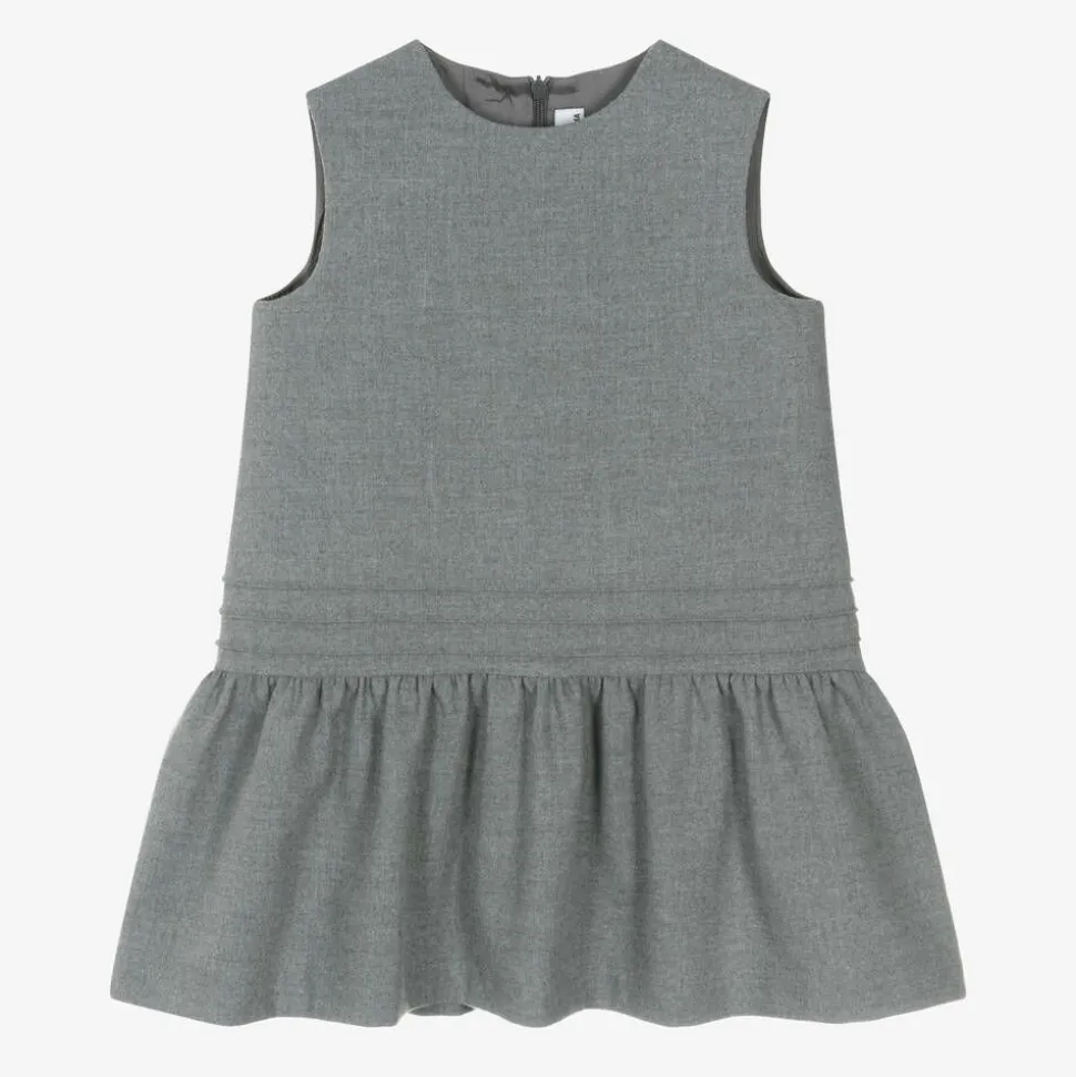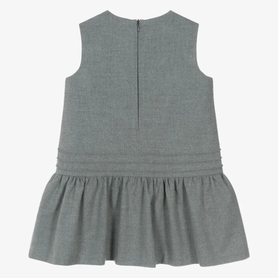 Sleeveless grey dress for girls by luxury Italian brand, Il Gufo. This timeless, understated style has a dropped waist and a floaty skirt. The bodice has a silky lining for comfort, and there is a concealed zip on the back for a neat finish.