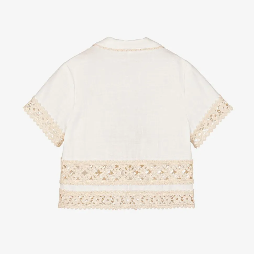 Girls Ivory Cotton Crochet Trim Shirt