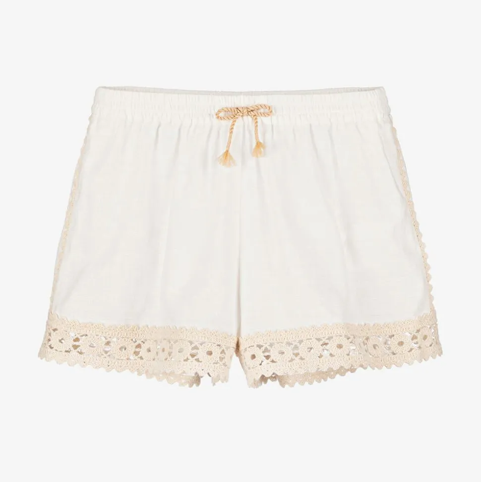 Girls Ivory Cotton Crochet Trim Shorts