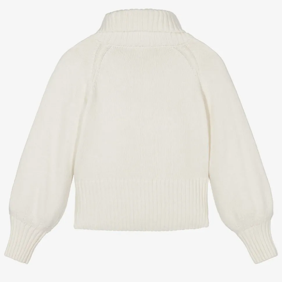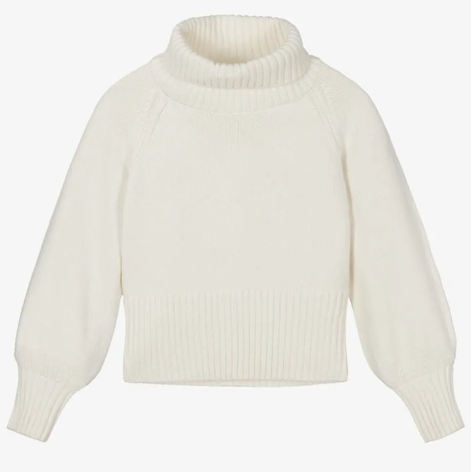 Ivory roll neck sweater for older girls by iDO Junior. Knitted in a soft cotton blend, this cosy top has long, ribbed trims for style and shape.