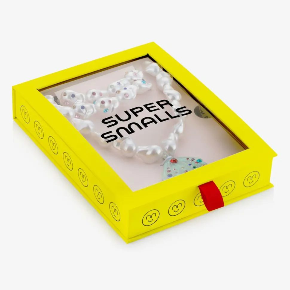Fabulous jewellery set for girls by Super Smalls. The ivory, mermaid-inspired necklace has a statement blue shell pendant, with sparkling glitter and colourful rhinestones. The two pearlescent bracelets are made up of shell-inspired charms. Each piece of jewellery in the set is elasticated for comfortable wear. The set comes in the brand's signature box.