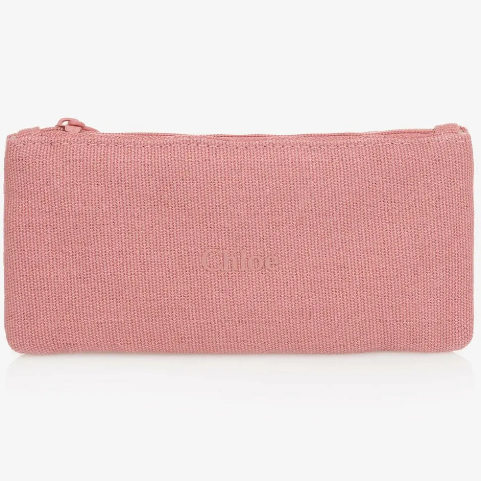 Clear orange sunglasses for girls by luxury French designer ChloƩ, featuring the brand's iconic hexagonal-shaped frame. They have stylish gradient lenses with a category 2 filter, providing good protection against sun glare. They have braided detailing on the side and a gold logo on the left temple. The sunglasses come in a branded protective carry case with a matching care cloth.