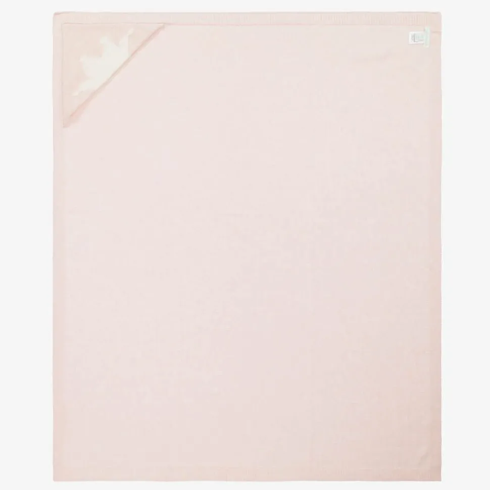 Lovely pink super soft Pima cotton babygrow and shawl gift set for baby girls, designed by the Greek princess Marie-Chantal. The babygrow is made in comfortable pointelle jersey, with the brand's signature Angel Wings on the back, padded and embroidered. It fastens with easy-to-use poppers on the front and between the legs. It comes with a beautifully soft, knitted cotton and cashmere blend shawl, that has a corner hood patterned with a white intarsia crown.