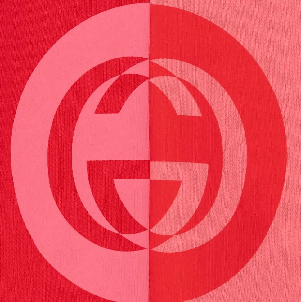 Make a stylish addition to her wardrobe with this 80's inspired pink and red girls hoodie, by luxury designer Gucci. Printed with an interlocking G logo on the chest, it has stretchy ribbed trims for a cool yet casual look.