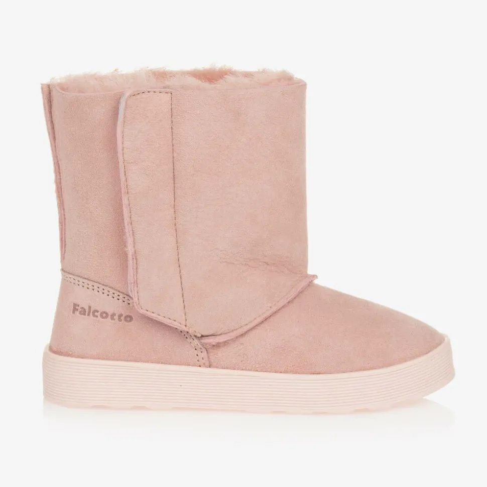 Lovely pink ankle boots for little girls from Falcotto by Naturino, made in super soft suede leather. These cosy boots are fully lined with fluffy faux fur for warmth and comfort. They fasten easily with velcro on the side and have flexible, non-slip rubberised outer soles ensuring good grip on slippery surfaces.