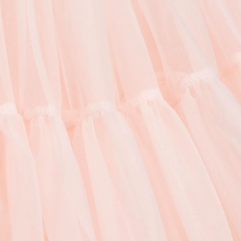 Girls pale pink tutu skirt by Angel's Face, made from layers of super soft tulle. Fully lined with stretchy cotton jersey for comfort, it has an elasticated waistband trimmed with the brand's golden logo charm.