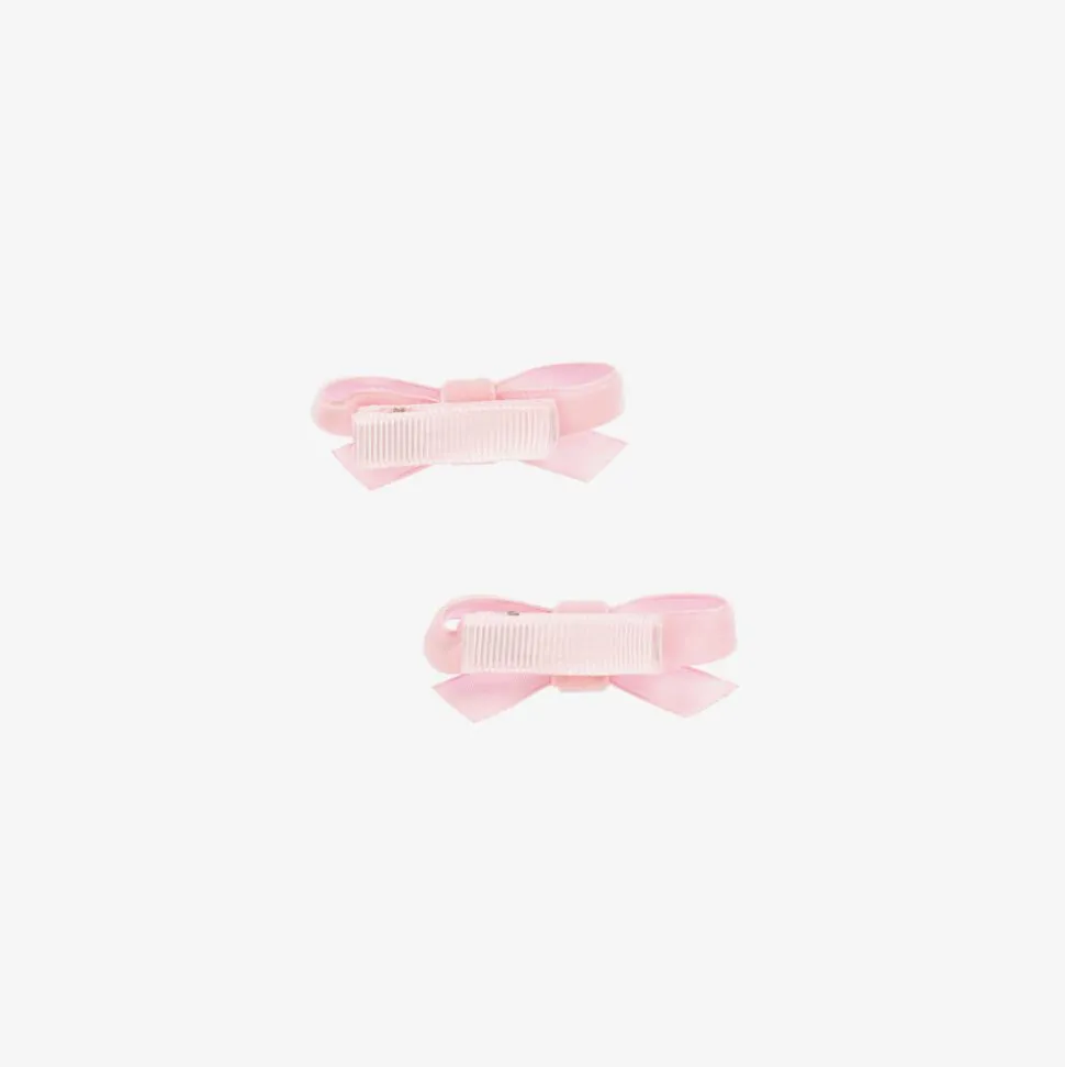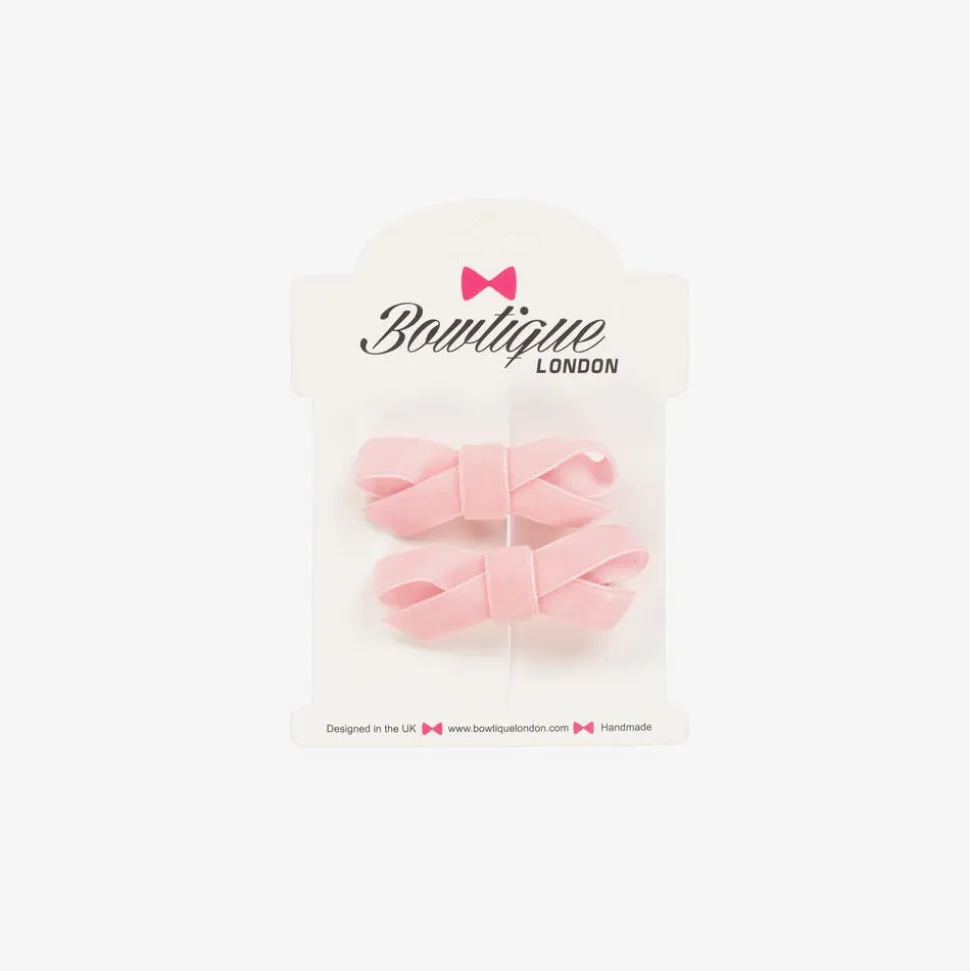 A pack of two light pink velvet bow hair clips for girls by Bowtique London. A lovely finishing touch to complete an outfit, the bow is set on a metal clip for easy use.