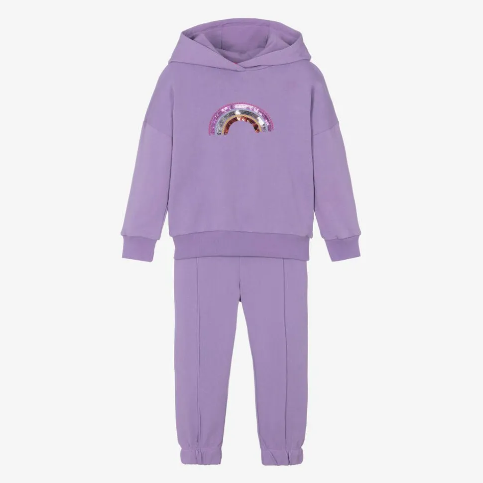 Girls Purple Cotton Sequin Rainbow Tracksuit
