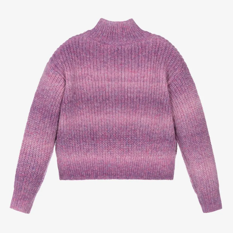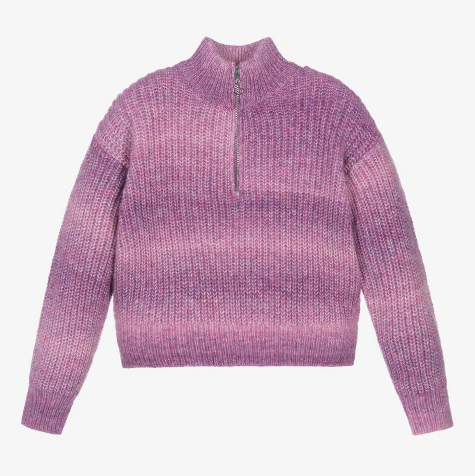 Purple sweater for older girls by Mayoral,made in a soft knit with a subtle tonal gradient effect. This casual top has ribbed trims and a silver half-zip fastening on the front.