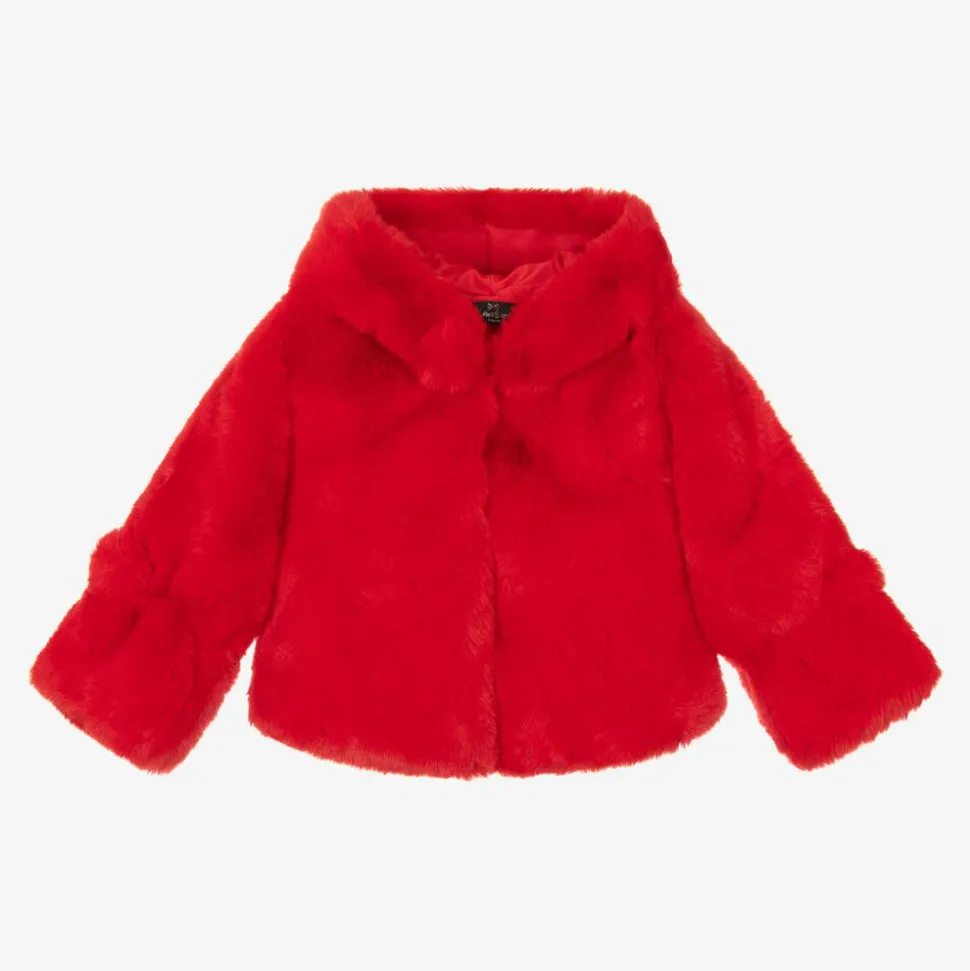 Girls Red Faux Fur Hooded Jacket