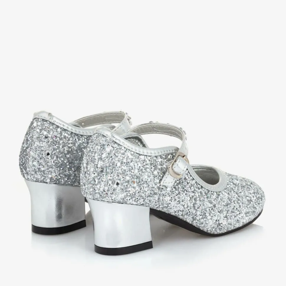 Girls Silver Glitter Heeled Shoes