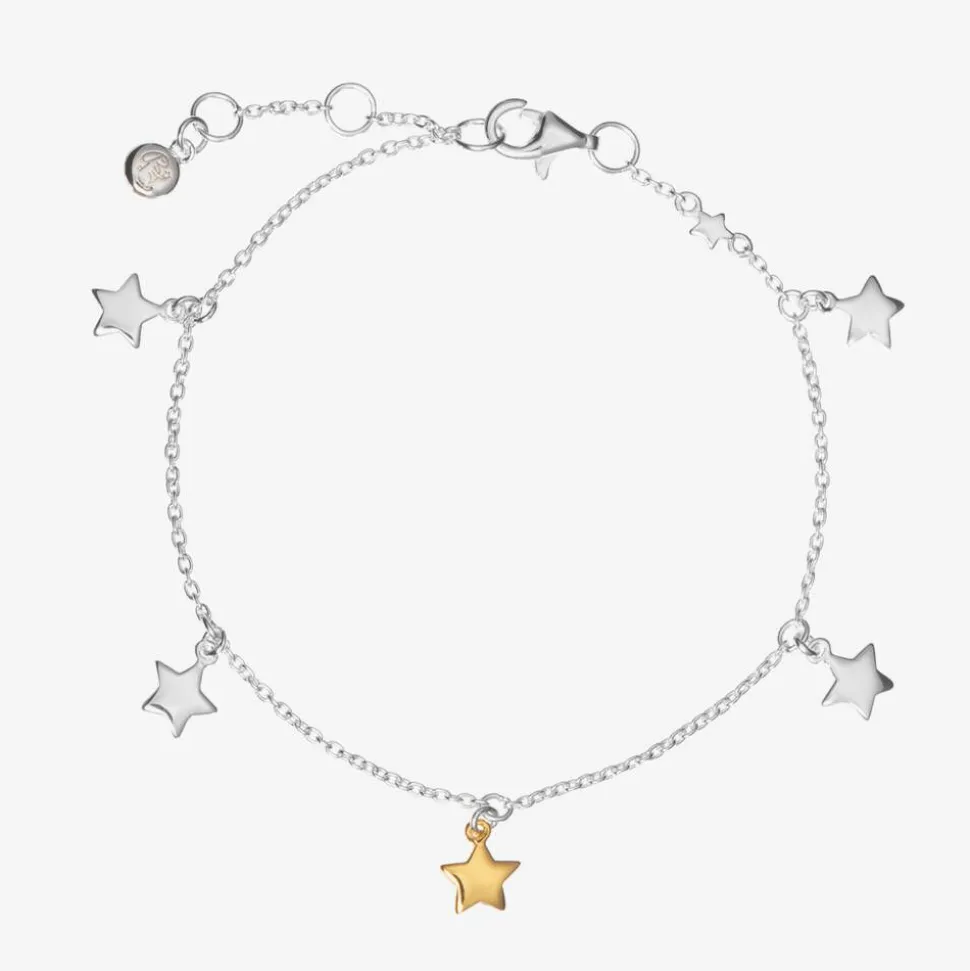 Delicate and dainty, this sterling silver bracelet for girls is by Little Star. Fastening neatly with a clasp, the adjustable chain is decorated with enchanting star-shaped charms, including one that is gold-plated for a sweet finish. Made to cherish, it is presented in a lovely drawstring pouch and box and comes with a Little Star gift bag, ideal for celebratory and special occasions.