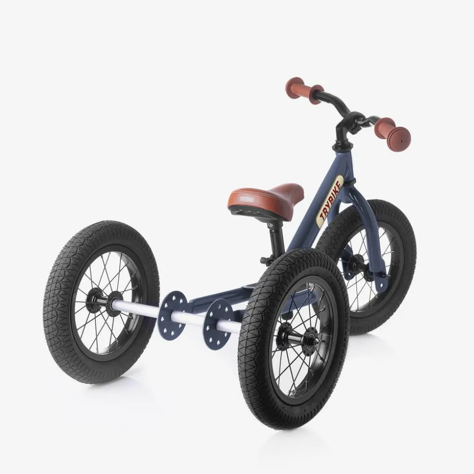 Glossy grey 2-in-1 trike for little boys and girls by Trybike, easily convertible through different stages of their development. It has an adjustable handlebar and saddle for comfort and inflatable 12" wheels for a smooth ride. The handlebars are designed with a unique, small-turning radius to help budding cyclists with easy manoeuvring. As your little one grows, the trike can transform into a balance bike, ideal for children to test out their balance and mobility skills. The frame is customisable with a variety of fun, retro-inspired stickers.